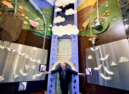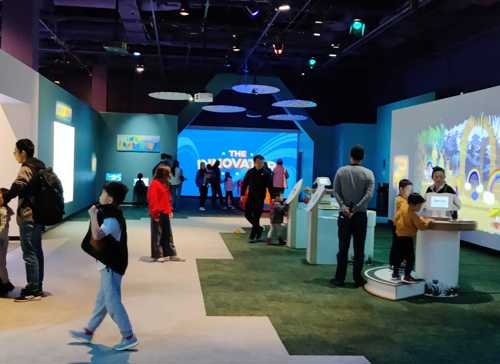 Innovation in Bloom is a two-story interactive exhibit where ideas come to life. Launch balls into the air and watch them race through winding tubes, past blooming flowers and playful local animals. At the bottom, build your own ball tracks and team up with friends to trigger a giant brainstorm of balls cascading down in an epic finale. It’s a joyful celebration of creativity, collaboration, and the power of imagination.