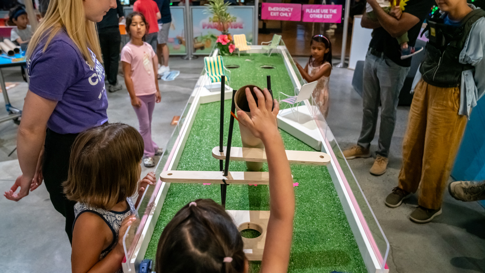 Step into Pixel Playground, a dynamic space where digital innovation meets real-world creativity! This interactive gallery features some of our favorite hands-on exhibits that blend technology with physical play. Whether you’re creating animals from blocks to train an AI, designing and testing a roller coaster, or painting with digital brushes, Pixel Playground encourages creativity beyond the screen.