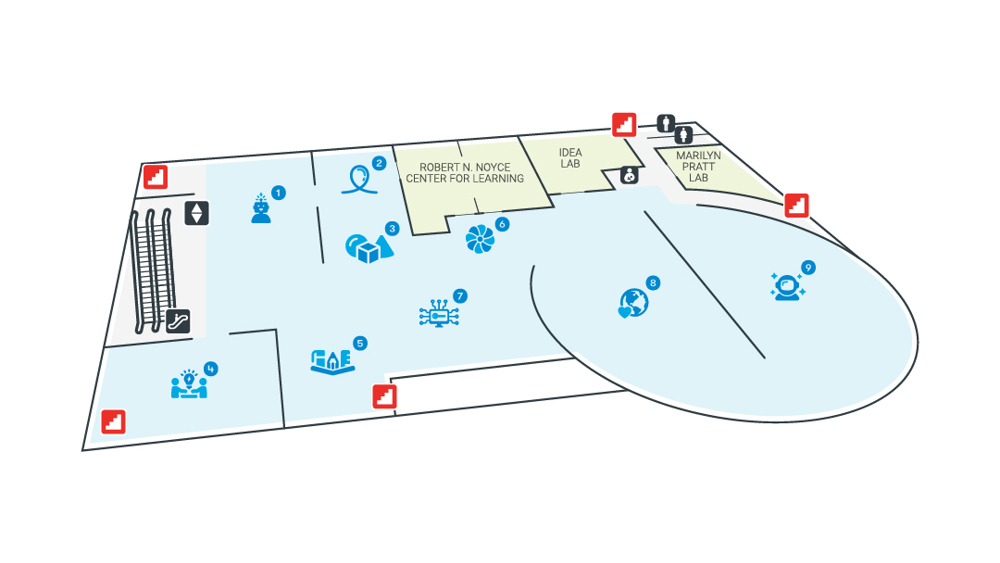 The Tech has two levels of galleries with interactive exhibits, the IMAX® Dome Theater, cafe, and store.