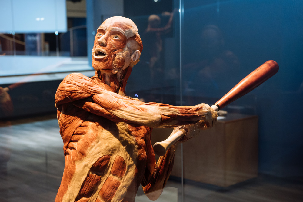 Eight full-body plastinates and more than 60 anatomical specimens have been provided by Gunther von Hagens’ Institute for Plastination. Explore the smallest organs to the most complex systems, including nervous, respiratory, cardiovascular, urinary, reproductive, digestive and locomotive.